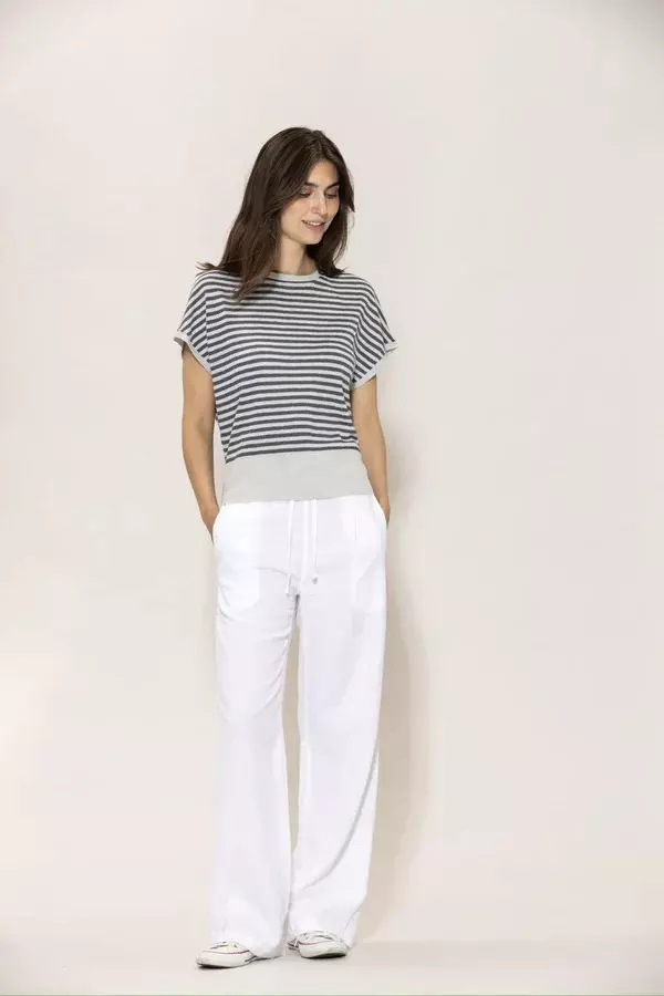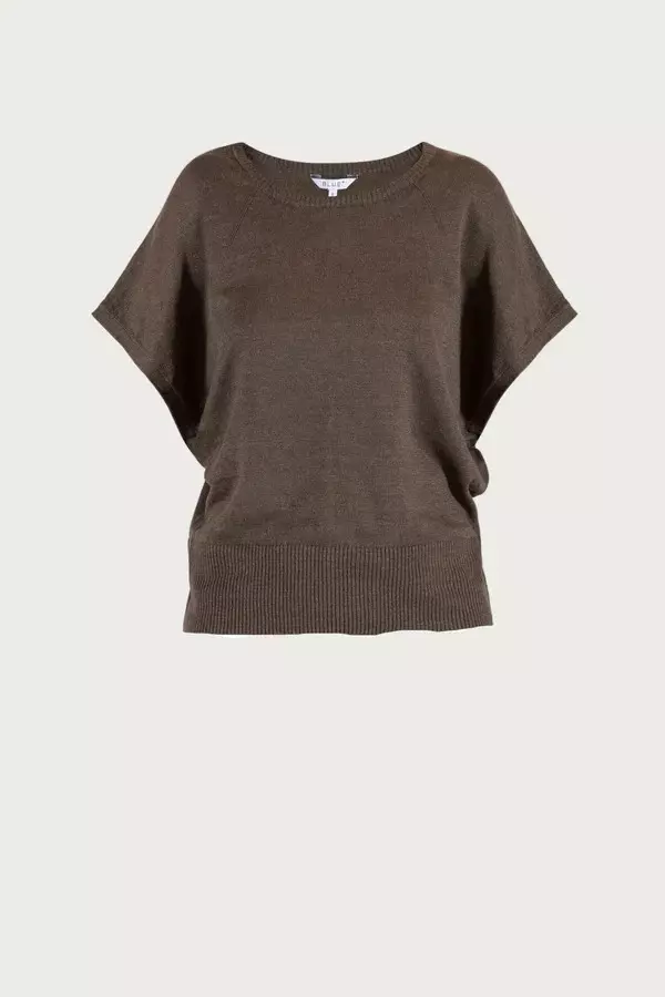 En strikkegenser laget av toppfarget lin med en lett struktur og mykvasket overflate. Designet med en bred brystpassform og ren ribbet overflate.