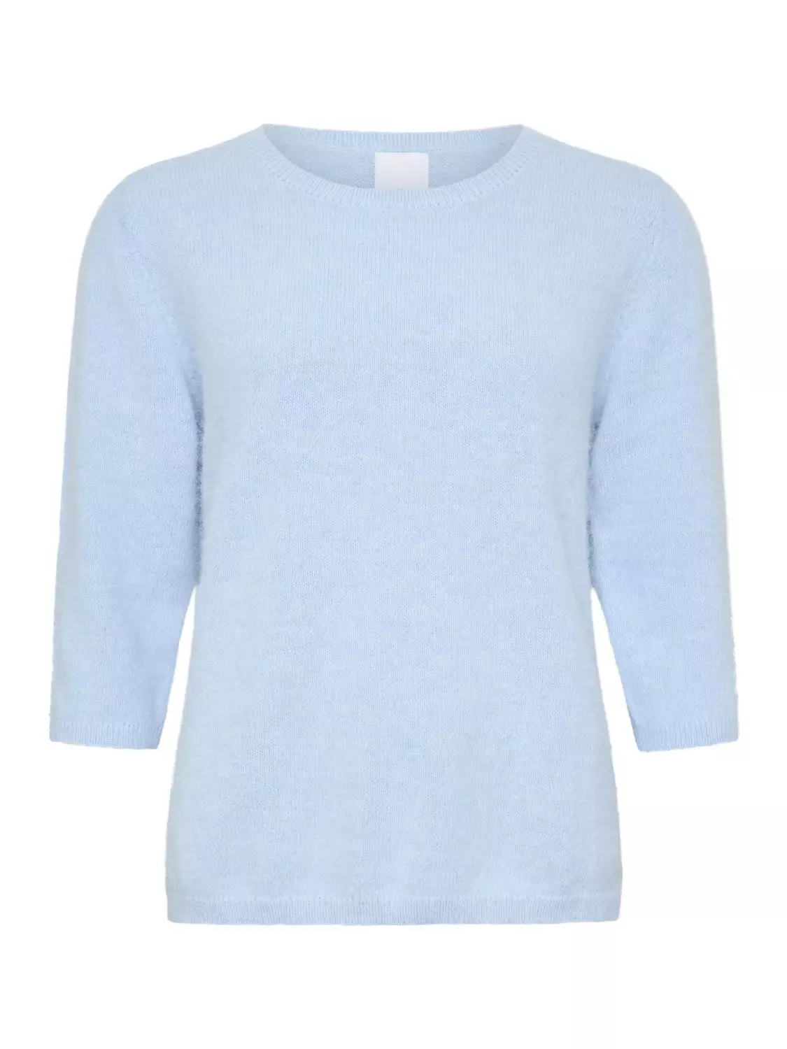 Elsa Pullover fra Ane Mone er en tidløs og myk strikkegenser. Denne favoritten har en avslappet passform med trekvart lange ermer, noe som gir et lett og feminint uttrykk. Genseren er designet med en klassisk rund hals, ribbestrikkede kanter og diskrete splitter i sidene som sørger for et pent fall over hoftene. Den er laget i en luksuriøs angoramiks som føles utrolig myk og behagelig mot huden.