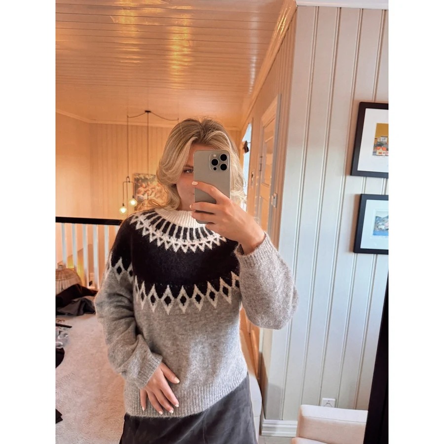 Annie Round Neck Sweater fra Rah er en moderne tolkning av den klassiske mønsterstrikken. Genseren er strikket i en eksklusiv blanding av kidmohair og ull som gir en myk og lun følelse, mens polyamid og elastan sikrer holdbarhet og komfort. Det karakteristiske mønsteret rundt halsen gir et nordisk preg og gjør genseren til et blikkfang i garderoben.